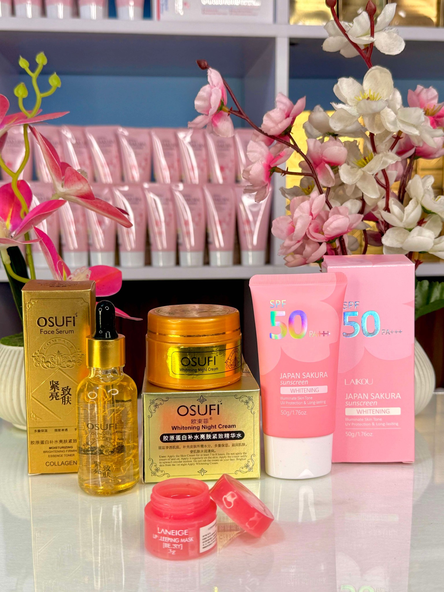 ওসুফি ফেস সিরাম, হোয়াইটেনিং নাইট ক্রিম ও জাপান সাকুরা হোয়াইটেনিং সানস্ক্রিন সেট